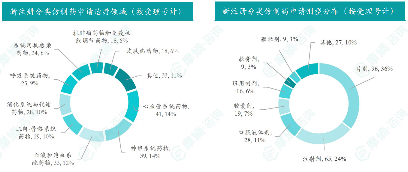 - 申请品种主要为系统用抗感染药物,申请剂型主要为注射剂;