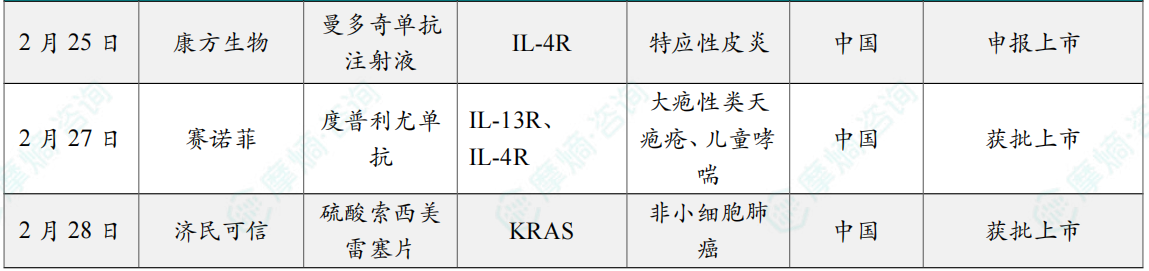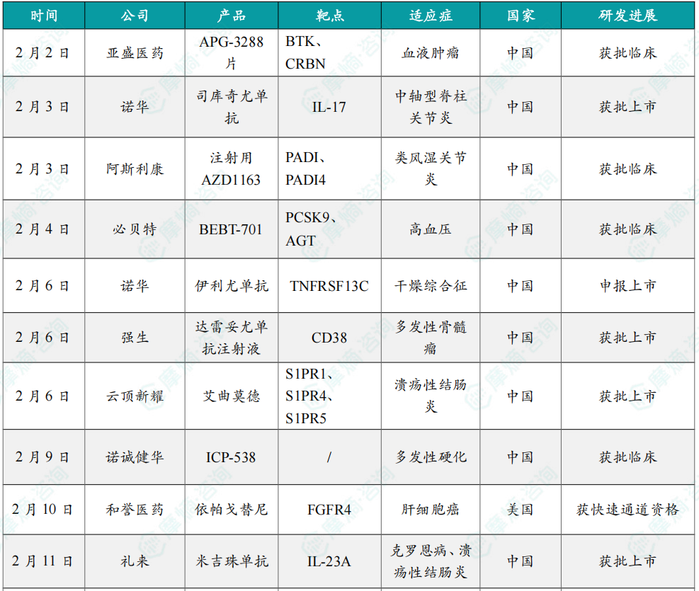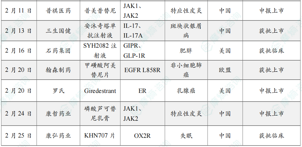 2月国内新药获批临床情况