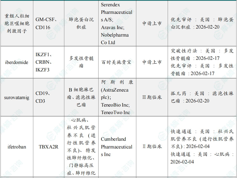 以上内容均来自摩熵咨询{ 2026年2月全球在研新药月报 },如需查看或下载完整版报告,可点击!