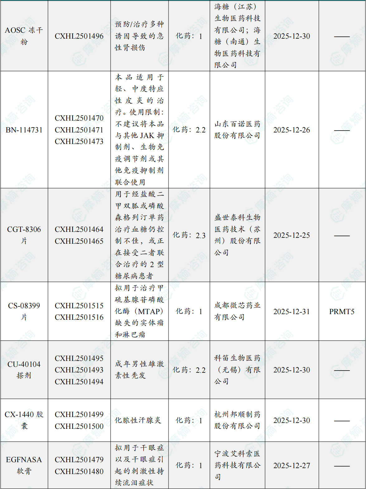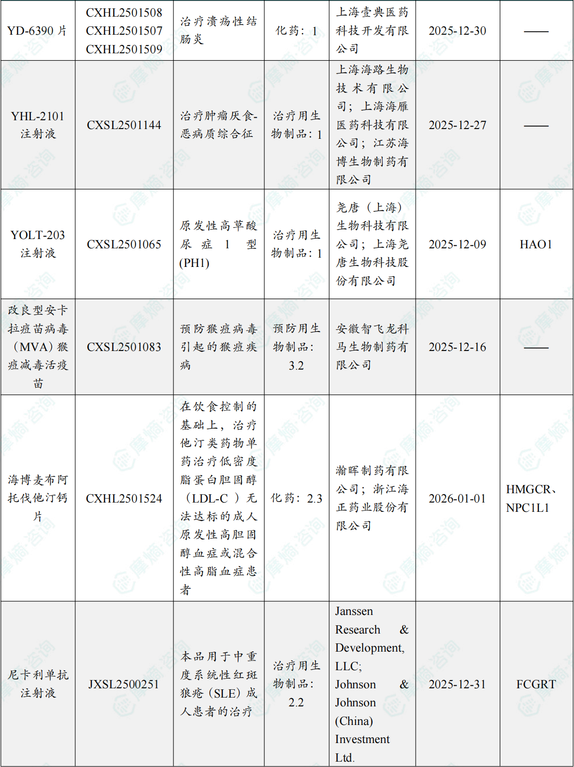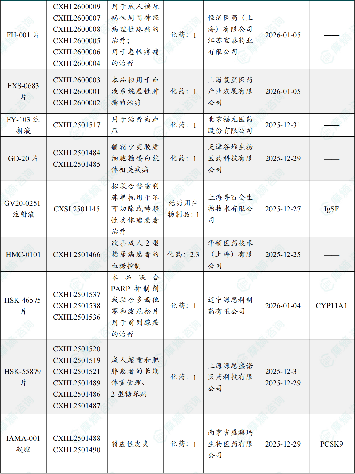 备注:(1)此处未包括补充申请之情形;(2)此处所列创新药/改良型新药,主要是指CDE受理批准的1类、2类、5.1类以及生物制品3.1类和3.2类。(3)更多获批临床信息及研发进展详情及相关靶点全局分析等,可通过摩熵中国药品审评数据库获取并下载EXCEL表格。
