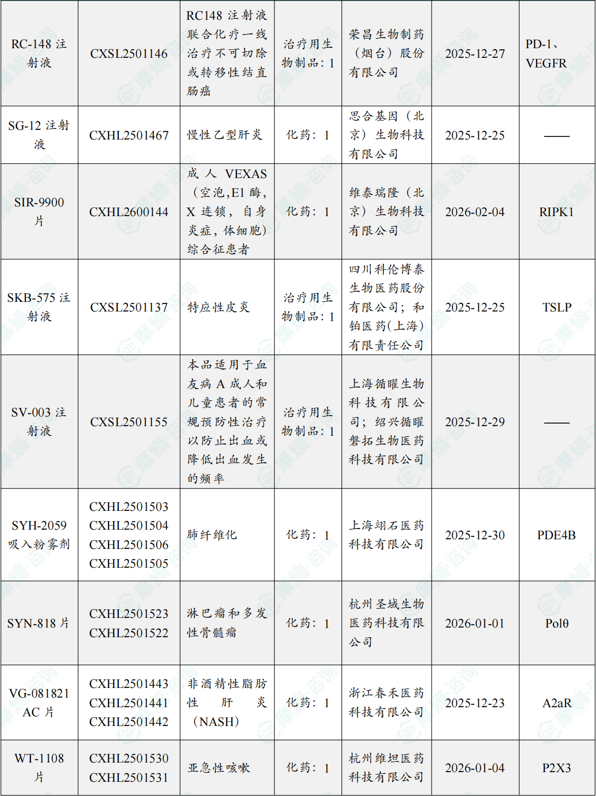 2026年3月9日,CDE官网公示:伦博泰申报的SKB-575注射液获得临床试验默示许可,用于治疗特应性皮炎。