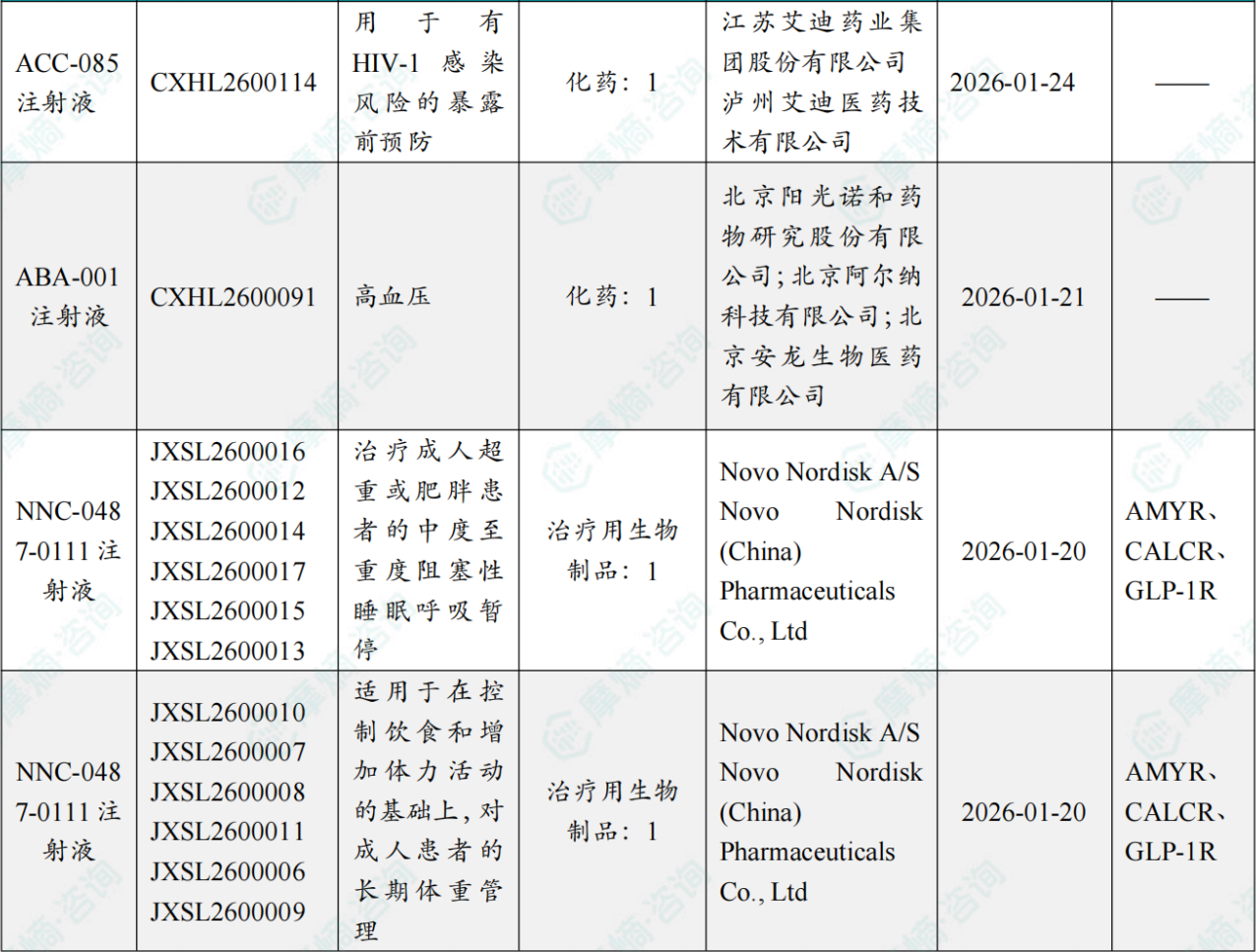 2026年4月3日,CDE官网公示:江苏艾迪药业集团申报的ACC-085注射液获得临床试验默示许可,用于有HIV-1感染风险的成人和体重至少35 kg青少年进行暴露前预防(PrEP)。