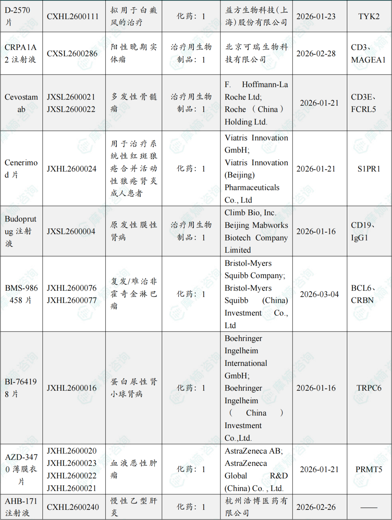 2026年3月31日,CDE官网公示:阿斯利康申报的AZD-3470薄膜衣片获得临床试验默示许可,用于血液恶性肿瘤。