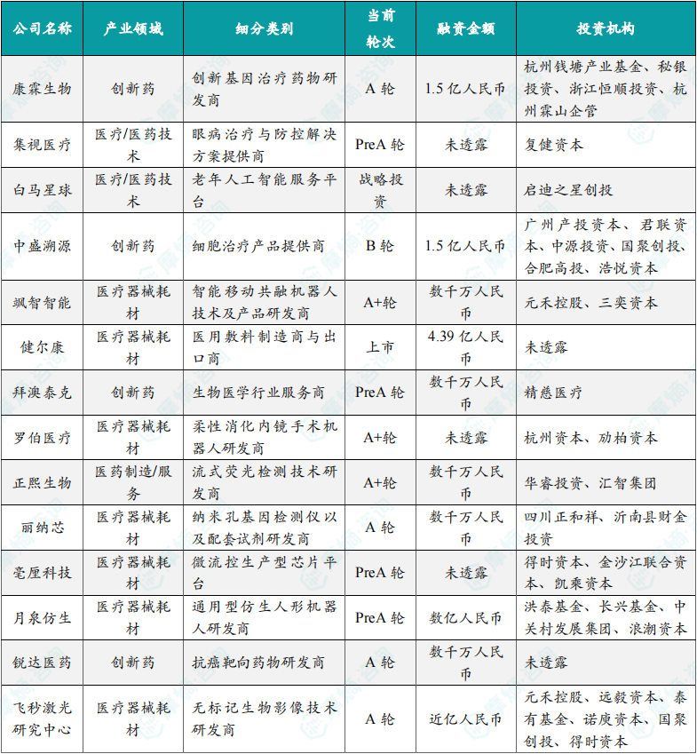 1.4.2 本周国内医药大健康行业投融资速览