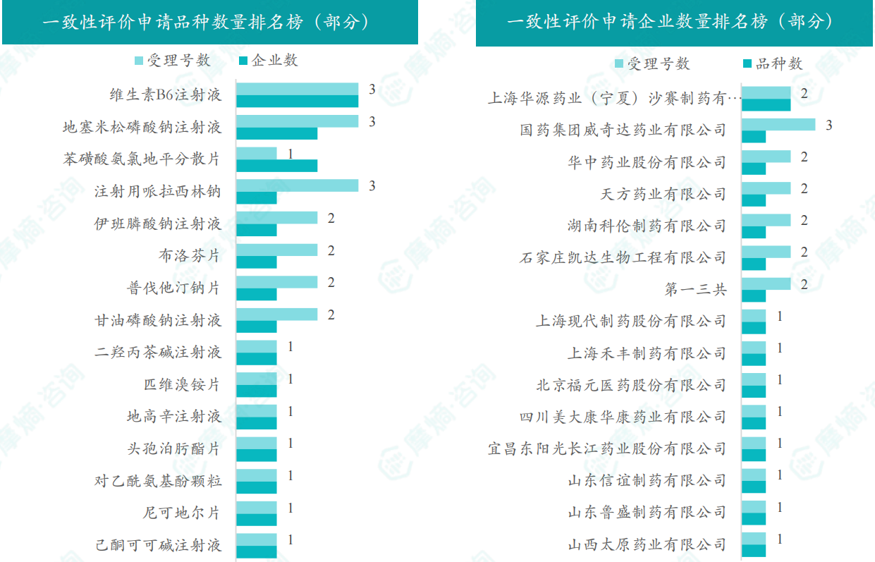 从品种来看,11月期间,维生素B6注射液为申请企业数最多的品种,有3家;上海华源药业(宁夏)沙赛制药有限公司是申请品种最多的企业,有2个品种。