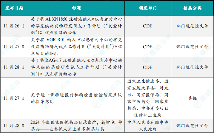 以上内容均来自{摩熵咨询医药行业观察周报(2024.11.25-2024.12.01)},如需查看或下载完整版报告,可点击!