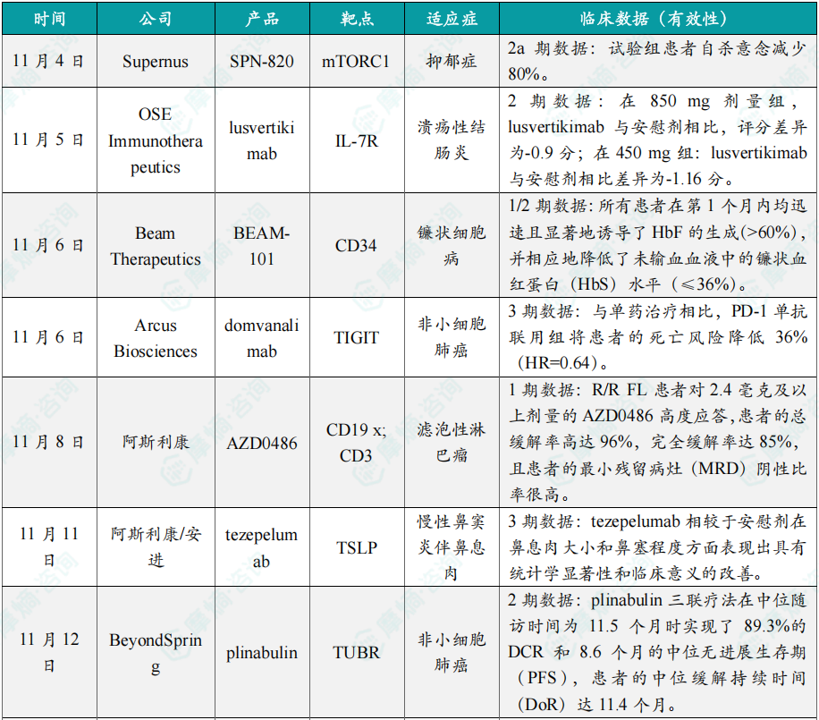 【11月全球在研新药与靶点月报内容亮点】