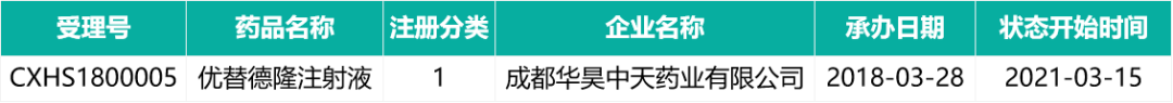 2021日3月15日,成都华昊中天药业申报的1类创新药优替德隆注射液(商品名:优替帝)获批上市。优替德隆为埃坡霉素类衍生物,可促进微管蛋白聚合并稳定微管结构,诱导细胞凋亡。该药为我国自主研发并拥有自主知识产权的创新药,也是国内获批的第一款埃博霉素类新药。
