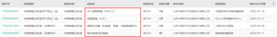 据药融云中国临床试验数据显示,优替德隆用于晚期非小细胞肺癌(NSCLC)以及结直肠癌(CRC)的II期临床试验目前正在进行中。