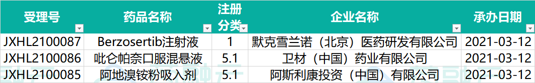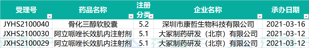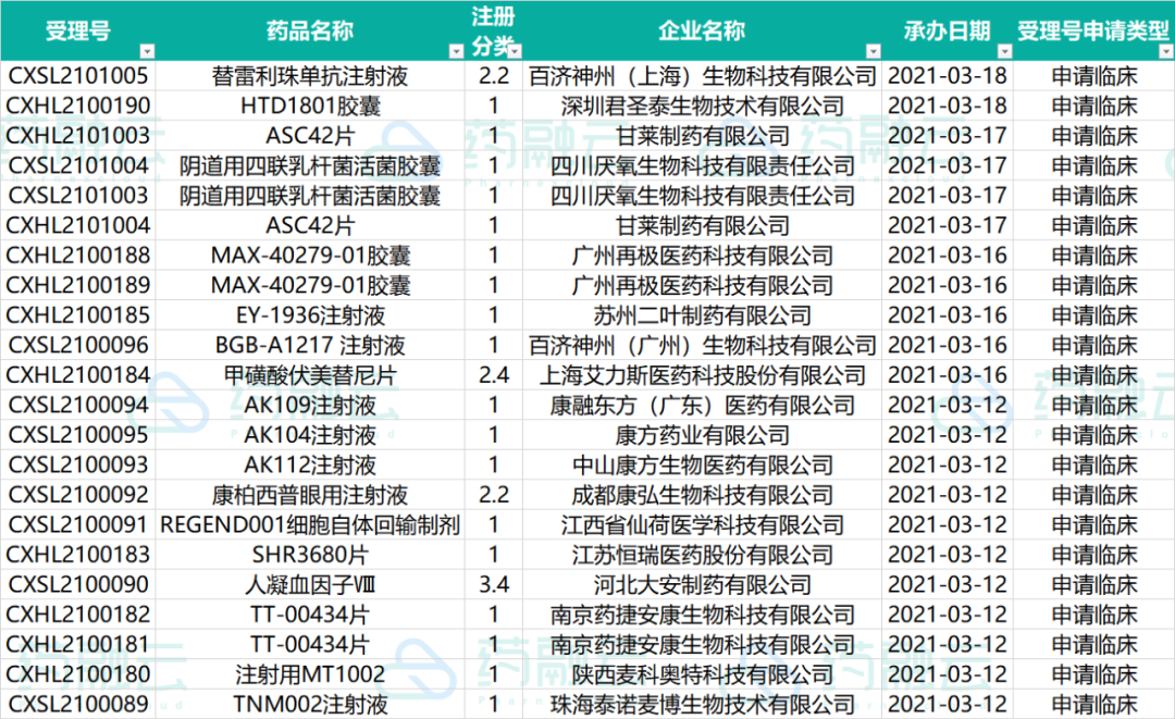 下表为2021.03.12-2021.03.18申请临床的新药药物情况。