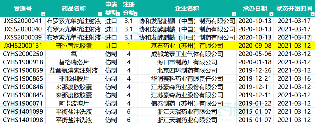 下表为2021.03.12-2021.03.18申请进口的进口药药物情况。