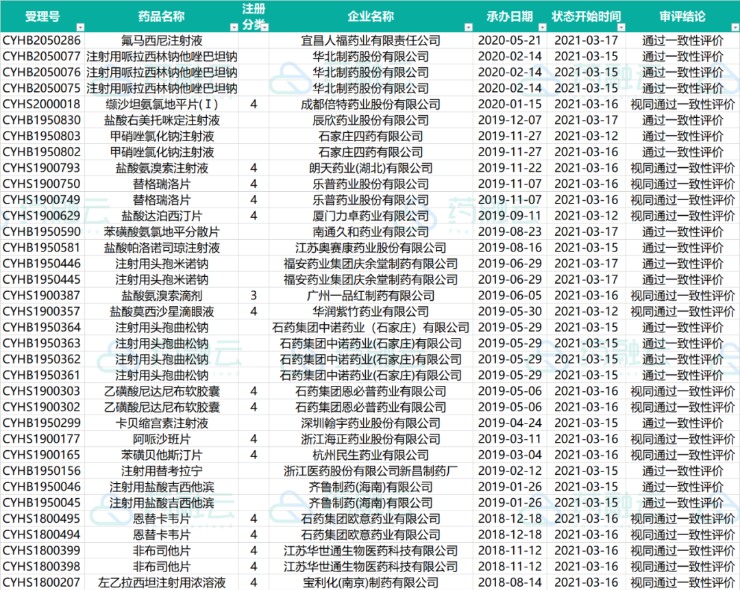 - 新增9个按仿制药质量和疗效一致性评价品种申报的受理号。