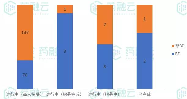 4、从试验状态来看,223项正在进行中,3项试验已完成,其中2项为BE试验