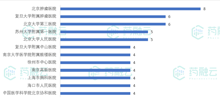 临床试验机构中,北京肿瘤医院以8项登记试验高居榜首。