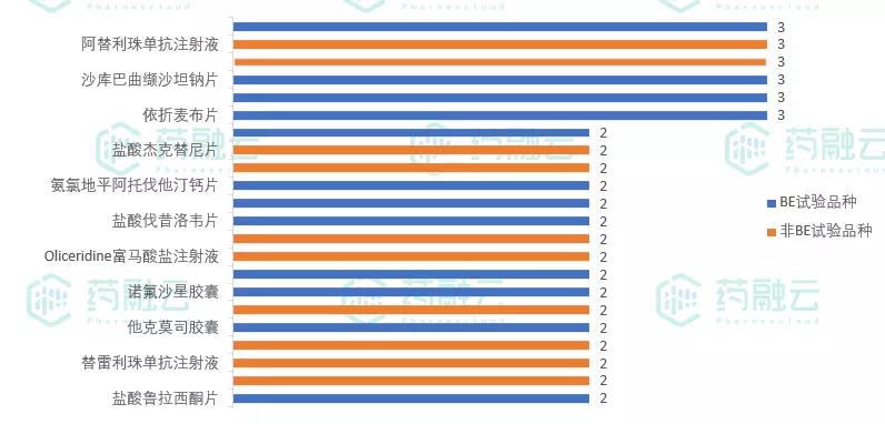 登记试验数≥2的药物品种