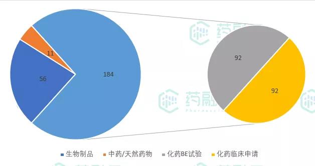 1、6月CDE新公示临床试验共计251项,生物制品56项,中药/天然药物11项,化学药物共计184项,化药占73%