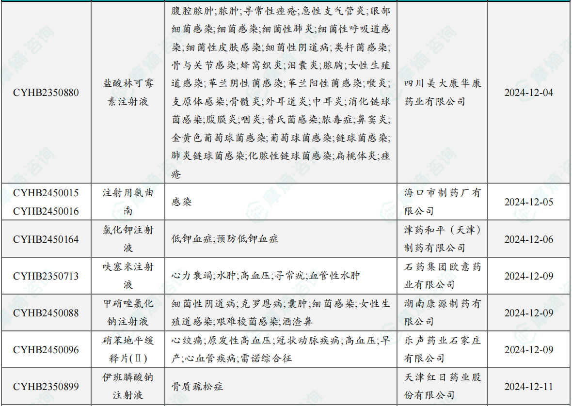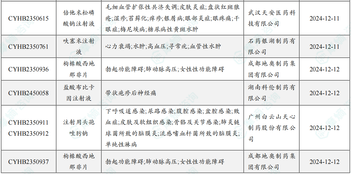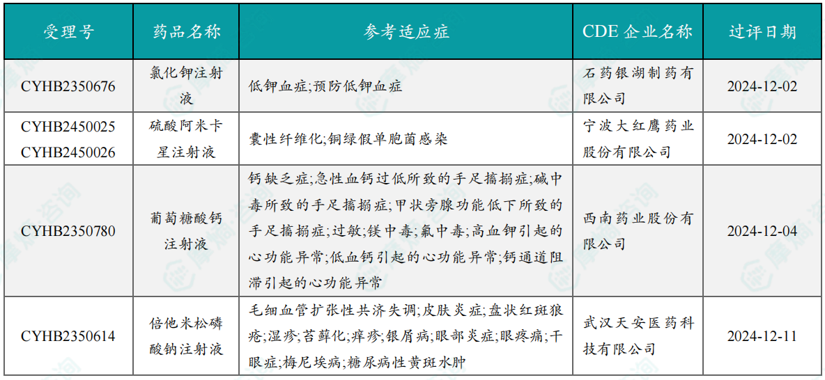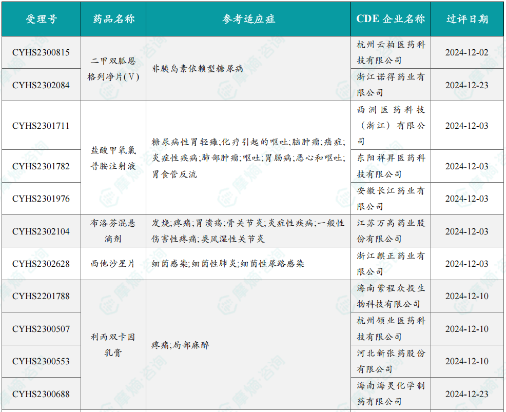 12月过评/新注册分类仿制药获批上市信息
