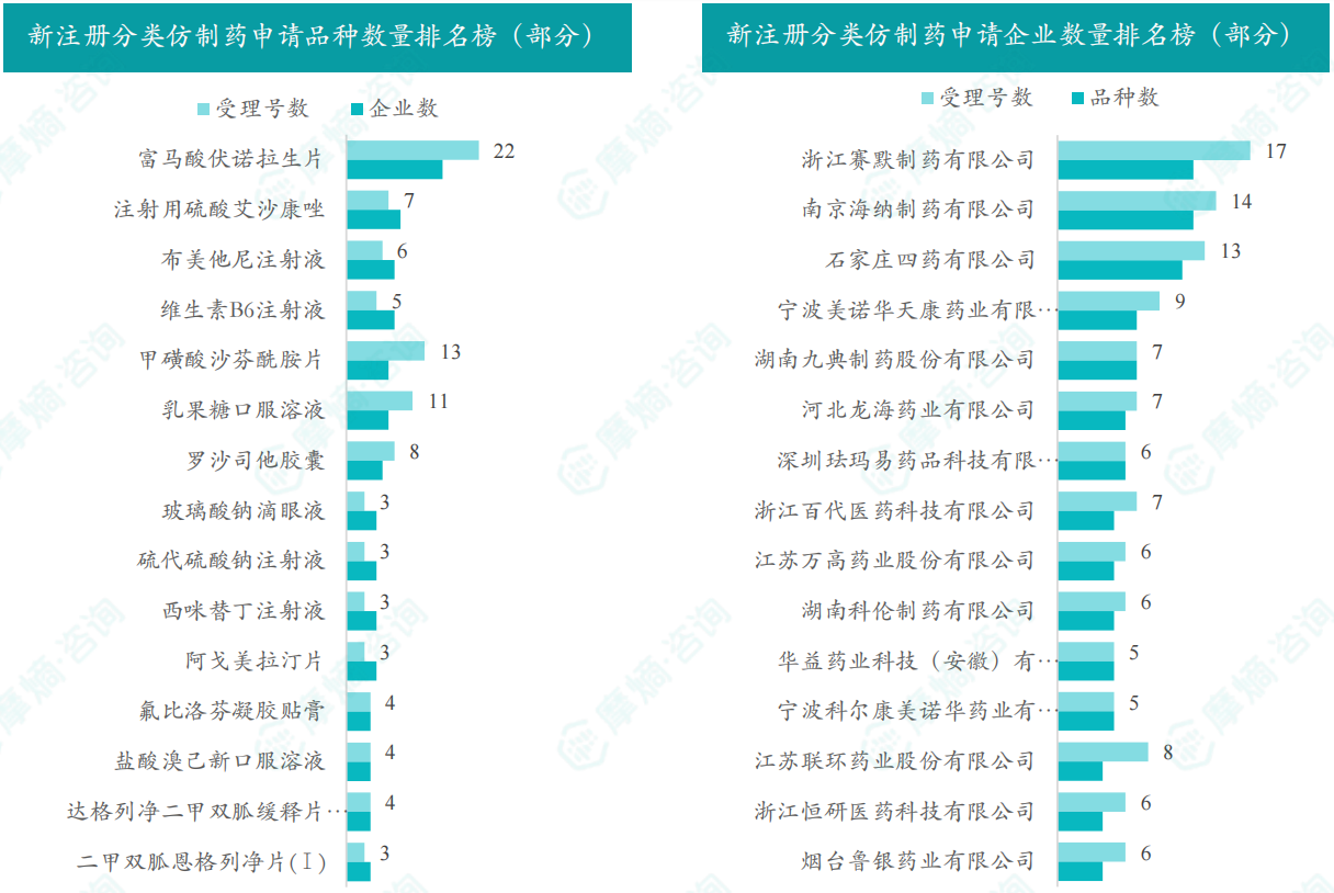 每月相关仿制药申报、仿制药临床申报、仿制药通过/视同通过一致性评价等,摩熵咨询团队基于NMPA、CDE渠道数据,真实可溯源,将每月推出「仿制药月报」, 以帮助业内人士通盘把握每月行业范围内的仿制药申报及获批情况。