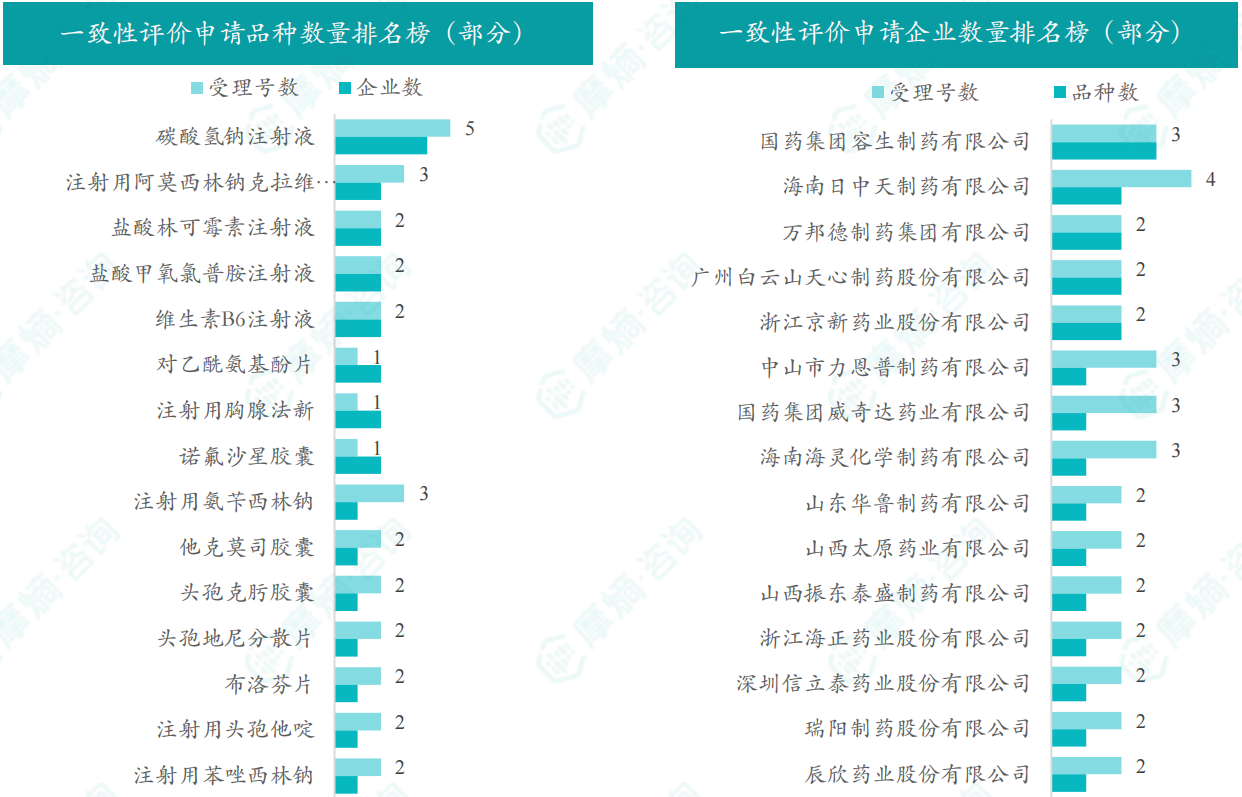 从品种来看,12月期间,碳酸氢钠注射液为申请企业数最多的品种,有4家;国药集团容生制药有限公司是申请品种最多的企业,有3个品种。