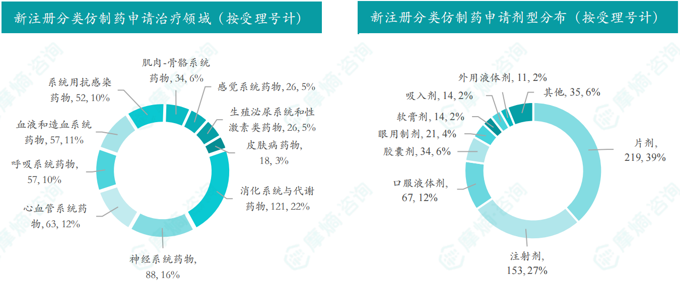 根据摩熵数据统计,2024年12月期间共有共有568项(共计 318 个品种)新注册分类仿制药申请获CDE承办,其中新注册分类临床申请46项,新注册分类上市申请522项。