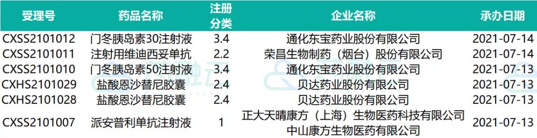 1、2021.07.09-202107.15期间药审中心受理总量为259个,涉及品种186个