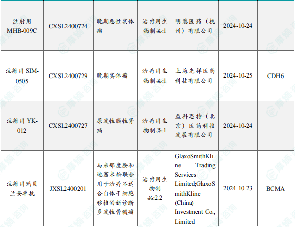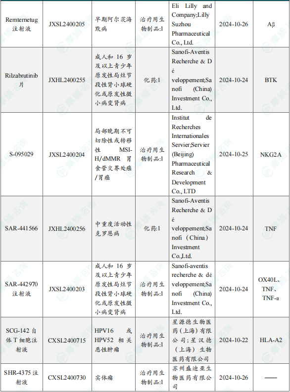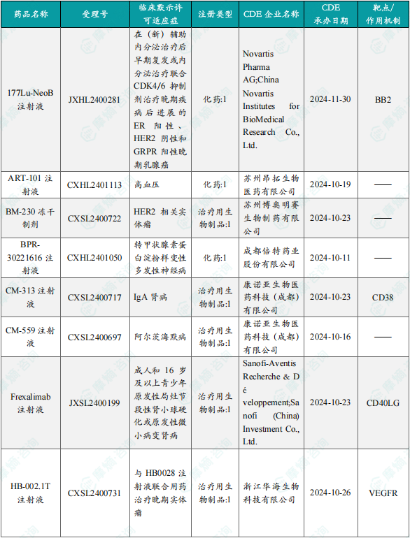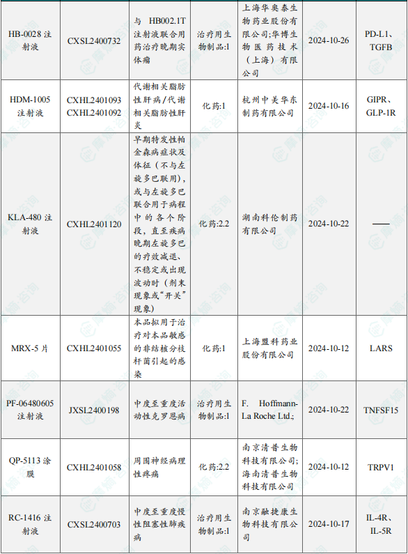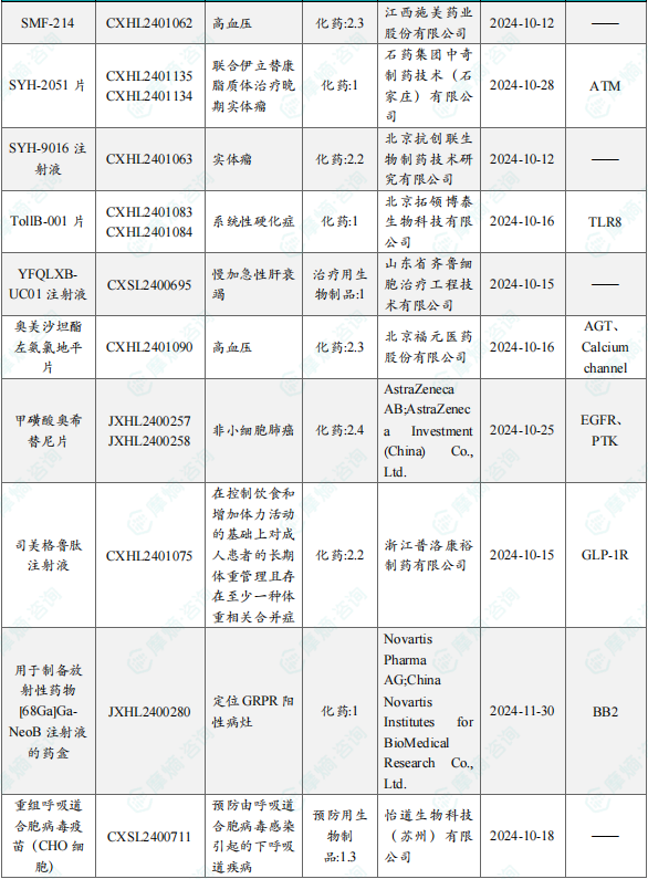 备注:(1)此处未包括补充申请之情形;(2)此处所列创新药/改良型新药,主要是指CDE受理批准的1类、2类、5.1类以及生物制品3.1类和3.2类。(3)更多获批临床信息及研发进展详情及相关靶点全局分析等,可通过摩熵中国药品审评数据库获取并下载EXCEL表格。