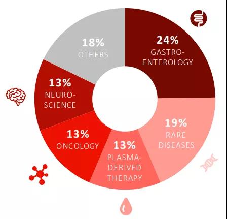 武田制药在其研发管线中,制定了wave1和wave2计划,即五年计划和十年计划。wave1的目标是实现短期增长,扩张全球品牌。创新生物制药是武田研发投入的最大组成部分,到2024年,其研发管线中的11个best-in-class / first-in-class新分子实体(NME)有望获得15项批准。