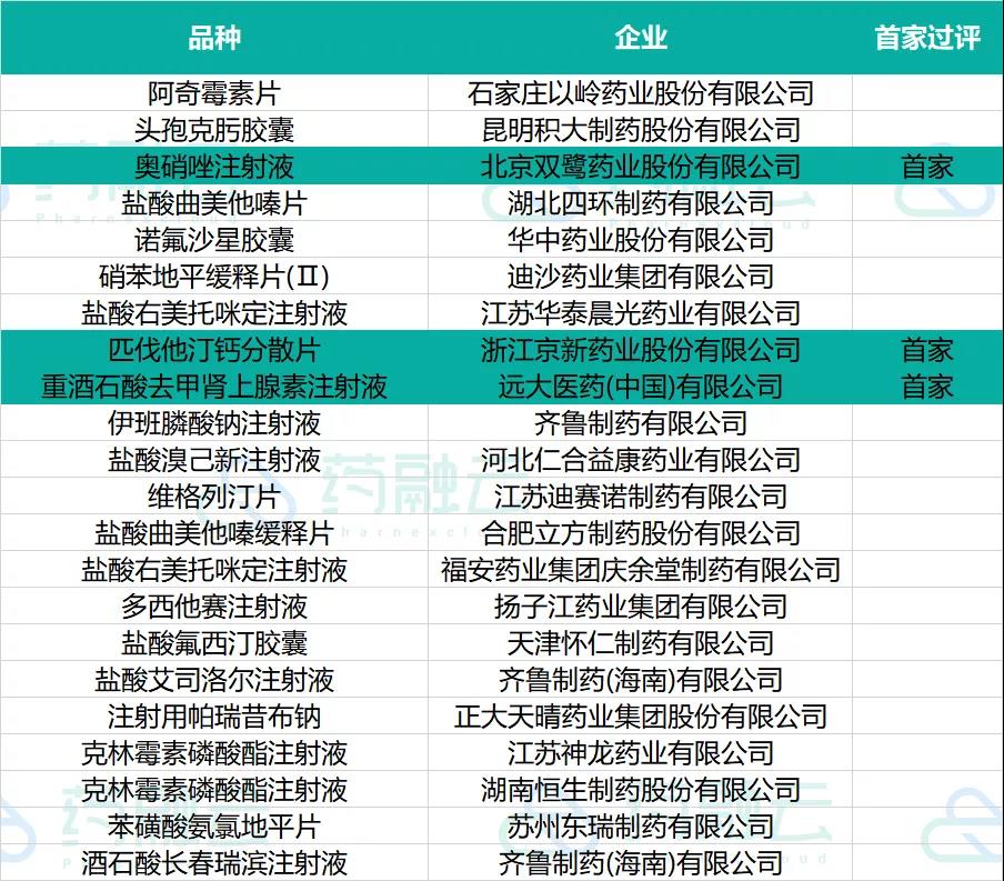 20个品种通过(含视同通过)一致性评价,3款首家过评