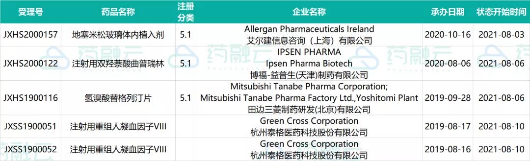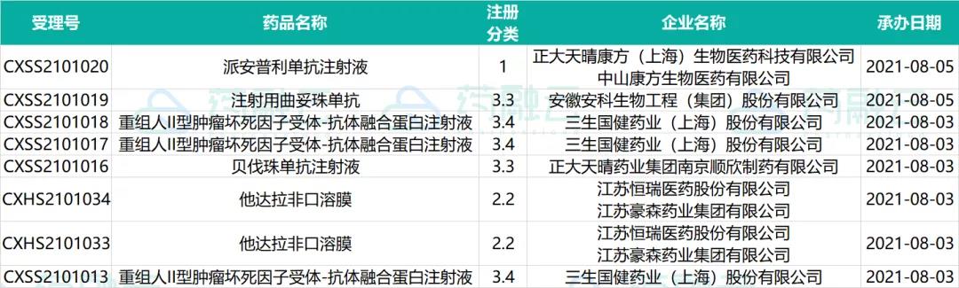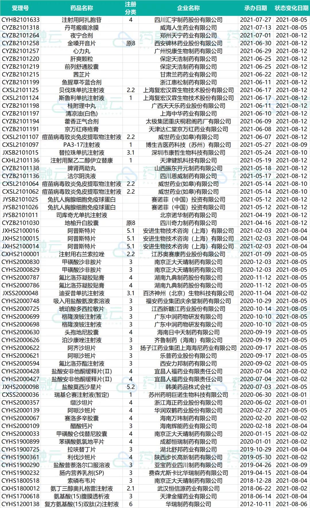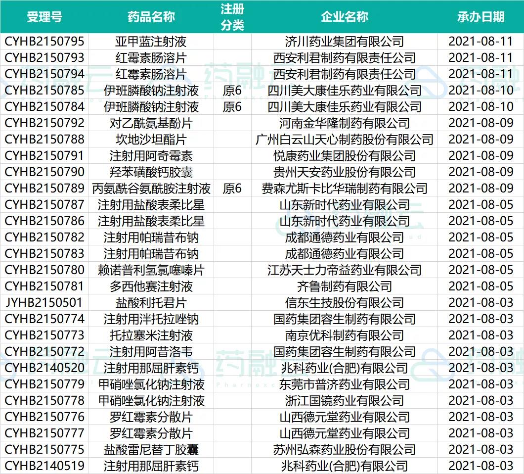 8月上旬药品审评审批