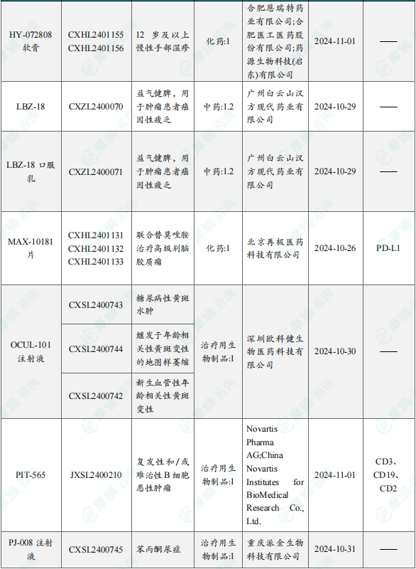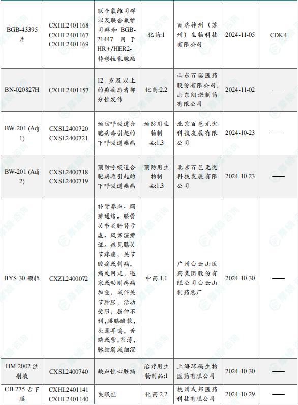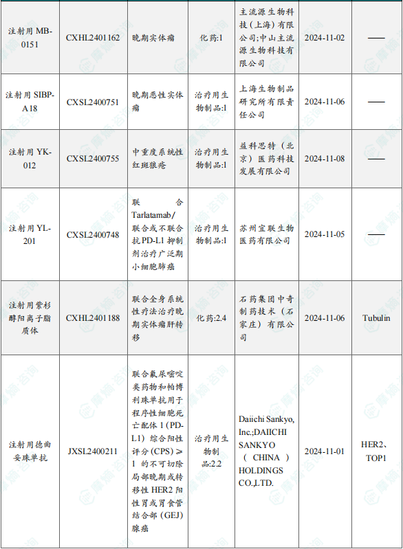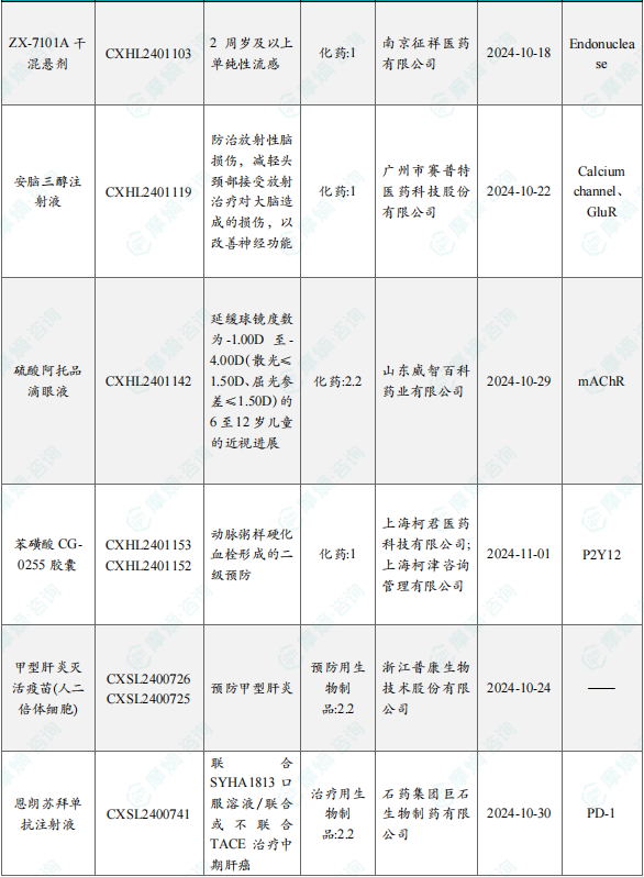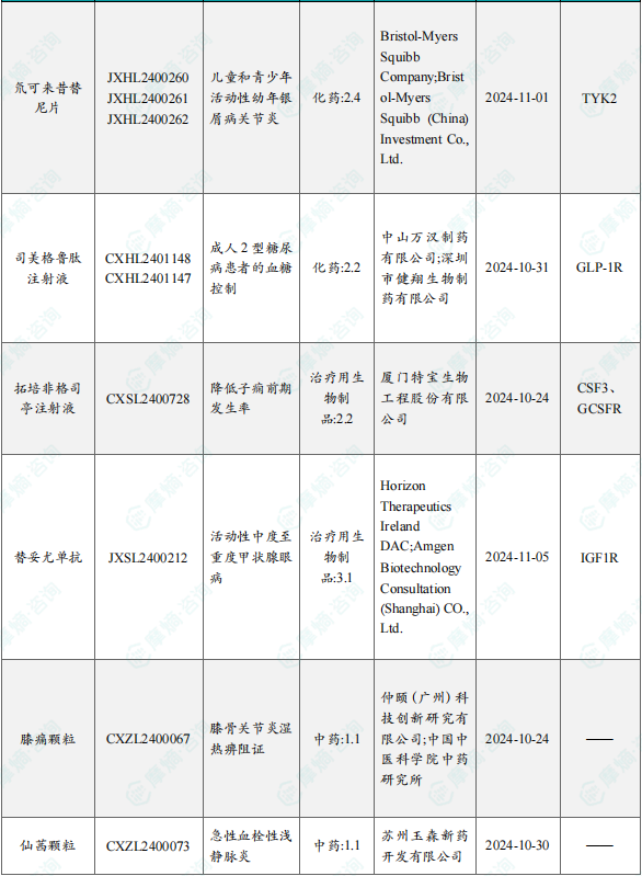 备注:(1)此处未包括补充申请之情形;(2)此处所列创新药/改良型新药,主要是指CDE受理批准的1类、2类、5.1类以及生物制品3.1类和3.2类。(3)更多获批临床信息及研发进展详情及相关靶点全局分析等,可通过摩熵中国药品审评数据库获取并下载EXCEL表格。