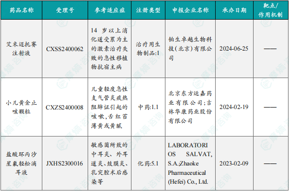 本周共3款新药获批上市,即艾米迈托赛注射液、小儿黄金止咳颗粒和盐酸环丙沙星氟轻松滴耳液。