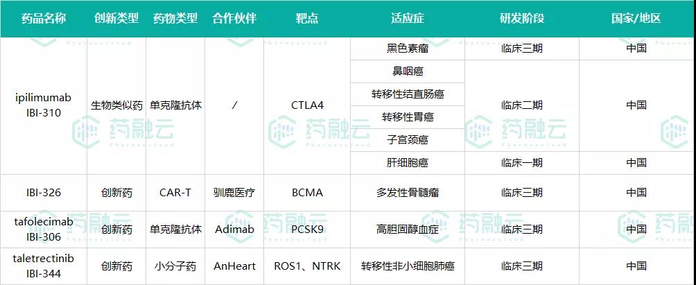 4款进入临床三期的新药中,只有一款生物类似药是信达生物自主研发的,其余均是合作研发。其中IBI-326是信达与驯鹿医疗共同研发的靶向BCMA的CAR-T产品。