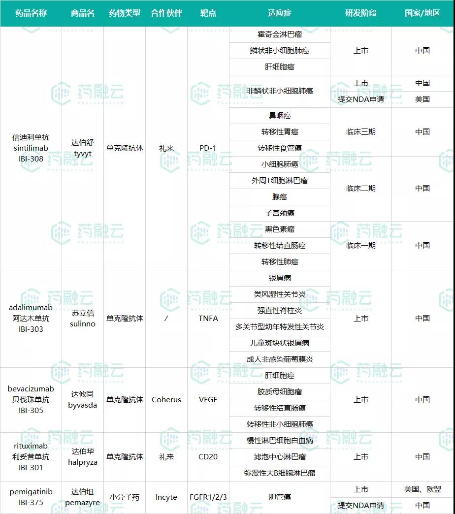 信达生物上市的5款产品(4款生物药),只有一款自主研发的创新药,3款自主研发的生物类似药,1款合作研发的小分子创新药。
