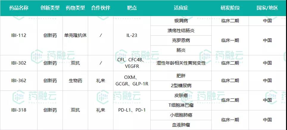 表4 信达生物临床二期的新药