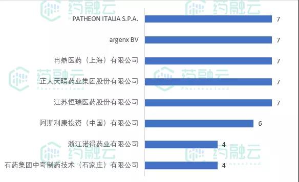 临床试验申办单位中,江苏恒瑞、再鼎医药、正大天晴、ARGENX和PATHEON ITALIA以7项登记试验位居第一。临床试验机构中,苏州大学第一附属医院以9项登记试验高居榜首。