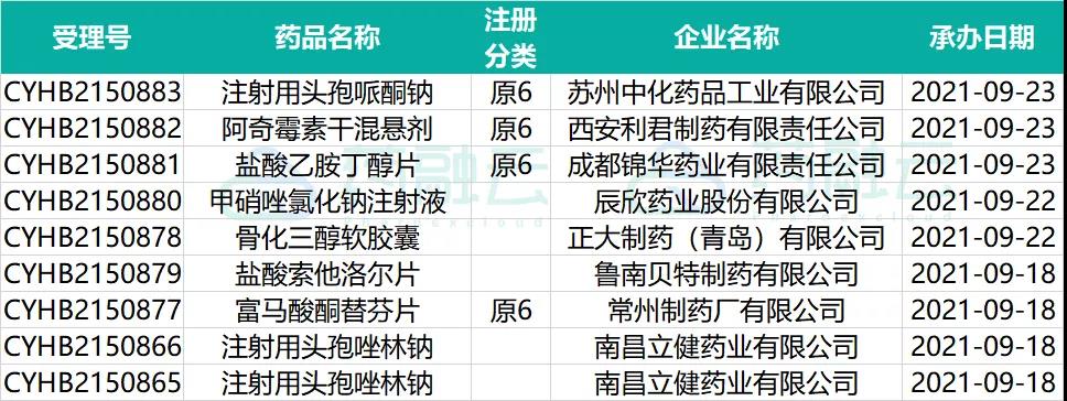 - 新增9个按仿制药质量和疗效一致性评价品种申报的受理号;