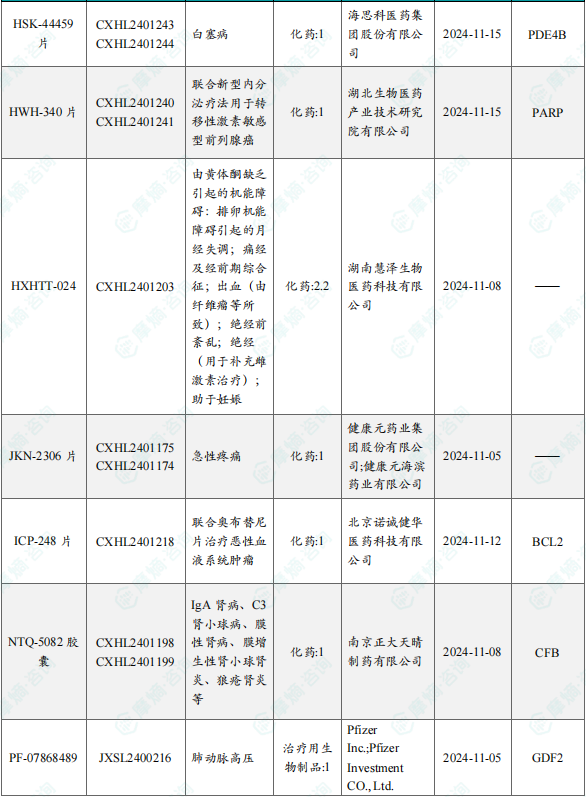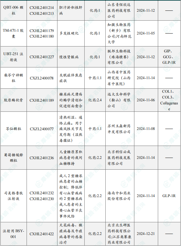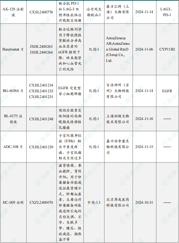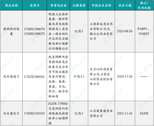 备注:(1)此处未包括补充申请之情形;(2)此处所列创新药/改良型新药,主要是指CDE受理批准的1类、2类、5.1类以及生物制品3.1类和3.2类。(3)更多获批临床信息及研发进展详情及相关靶点全局分析等,可通过摩熵中国药品审评数据库获取并下载EXCEL表格。