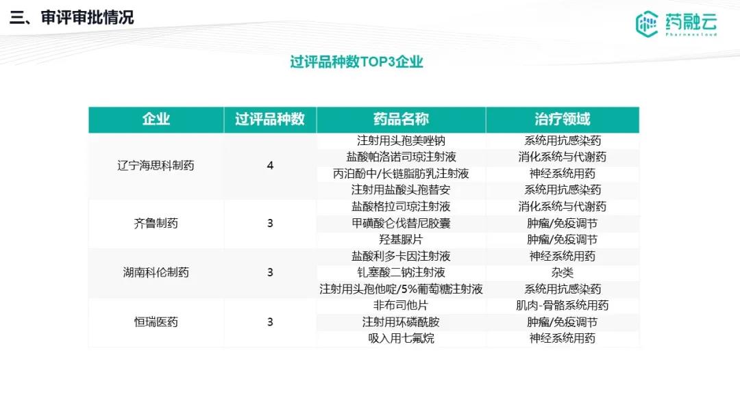 - 75个品种通过(含视同通过)一致性评价,海思科、齐鲁制药、恒瑞医药收获颇丰;其中15个品种首家过评,恒瑞医药和科伦药业各斩获2款首家。