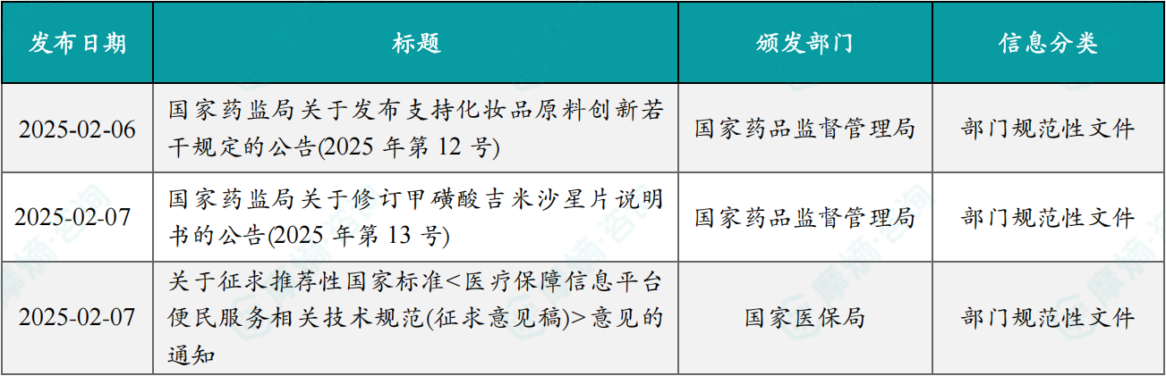 (1)《国家药监局关于发布支持化妆品原料创新若干规定的公告(2025年第12号)》