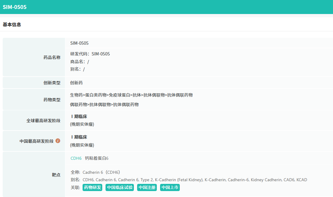 紧接着,1月3日,CDE官网最新公示,先声药业旗下先祥医药申报的1类新药注射用SIM0505获批临床试验默示许可,拟用于治疗晚期实体瘤。根据先声药业公开资料可知,这是一款靶向CDH6的抗体偶联药物(ADC),先声药业拟开发其用于治疗卵巢癌和肾癌等恶性肿瘤。