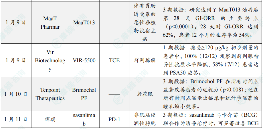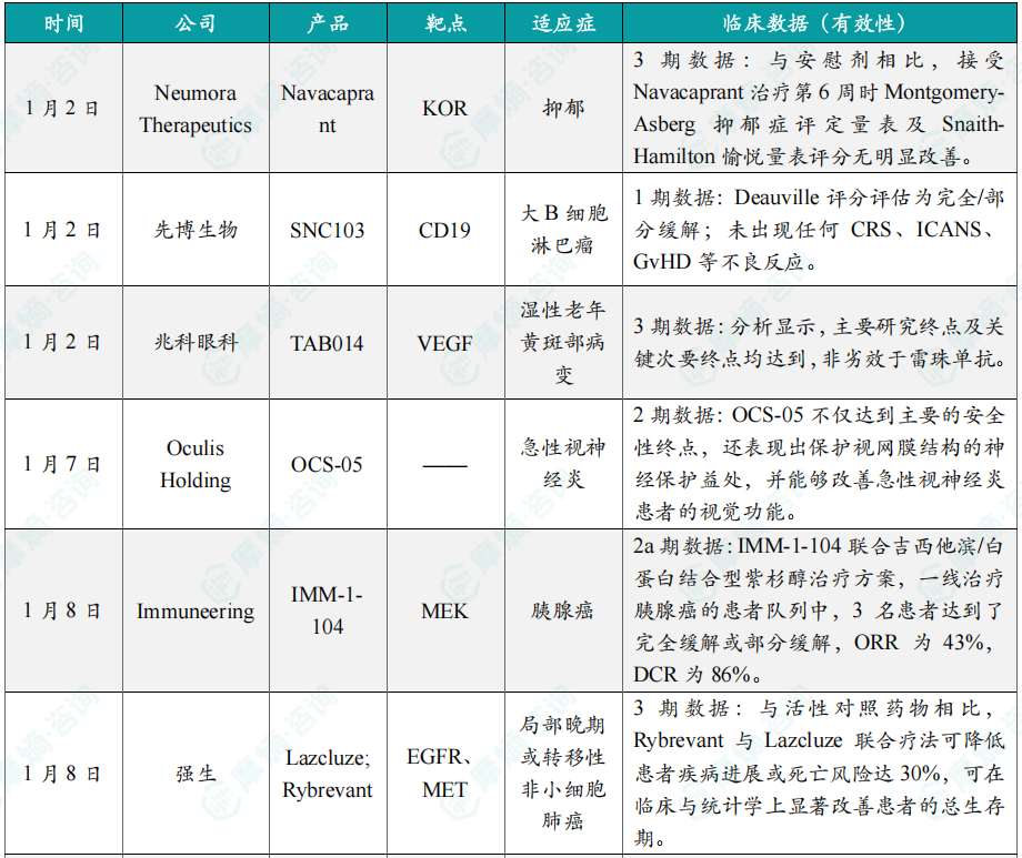1月全球在研新药与靶点月报内容亮点