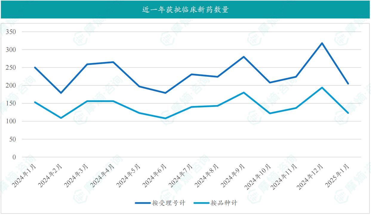 - 2025年1月共有123款新药获批临床;