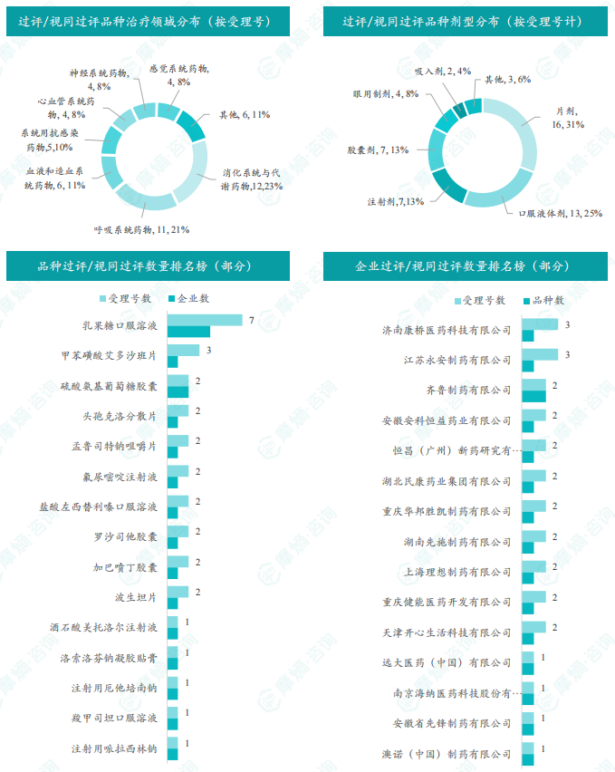 本周乳果糖口服溶液过评/视同过评受理号数量最多达7个,同时乳果糖口服溶液也是本周过评/视同过评企业最多的品种达4家;