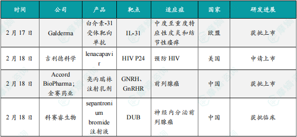 (1)Galderma宣布在研药品白介素-31受体靶向单抗在中国获批上市