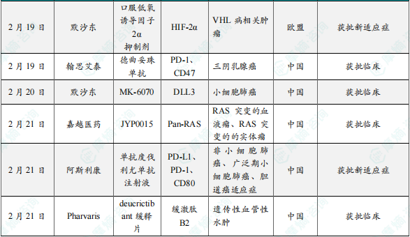 (5)默沙东口服低氧诱导因子2α(HIF-2α)抑制剂belzutifan在欧盟获批新适应症
