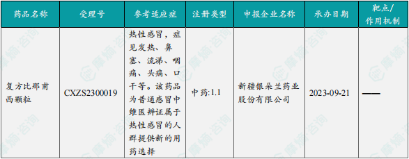 2月28日,国家药监局发布药品批准证明文件送达信息:新疆银朵兰药业的复方比那甫西颗粒获批上市,具有清除体内异常体液质的功效,用于热性感冒,症见发热、鼻塞、流涕、咽痛、头痛、口干等。该药品为普通感冒中维医辨证属于热性感冒的人群提供新的用药选择。