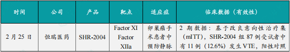 (1)恒瑞医药公布SHR-2004预防卵巢癌手术患者静脉血栓栓塞症的2期临床结果