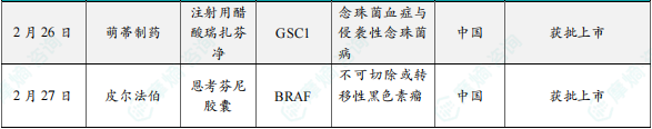 2月27日,皮尔法伯宣布BRAF抑制剂恩考芬尼胶囊在中国获批上市,用于不可切除或转移性BRAF V600突变黑色素瘤。恩考芬尼通过靶向BRAF蛋白阻断MAPK信号通路,抑制肿瘤生长。与单药相比,其与MEK抑制剂联用可显著延长无进展生存期,且降低皮肤毒性风险。中国黑色素瘤年新发病例超2万,BRAF突变占比约25%。该药物的上市为患者提供了精准治疗选择,未来或探索其在辅助治疗及联合免疫疗法中的潜力,进一步提升疗效。