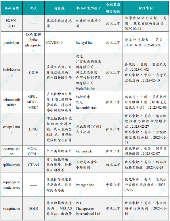 2月本月全球孤儿药/突破性/快速通道资格认定品种(部分)一览表