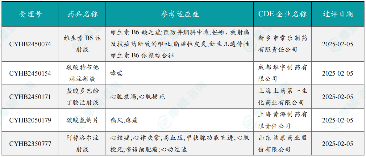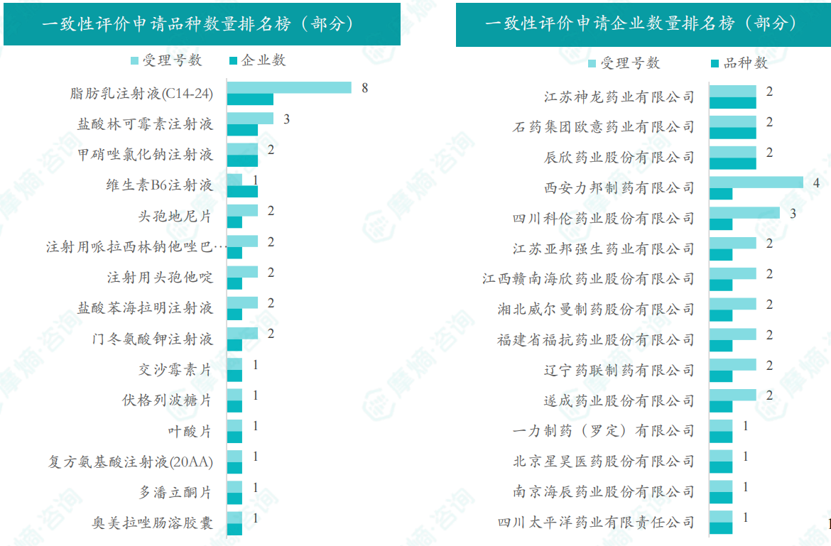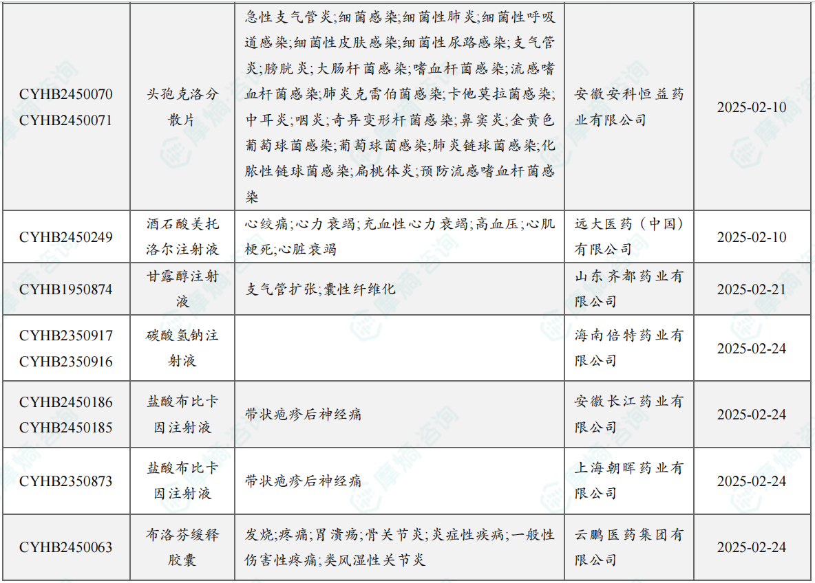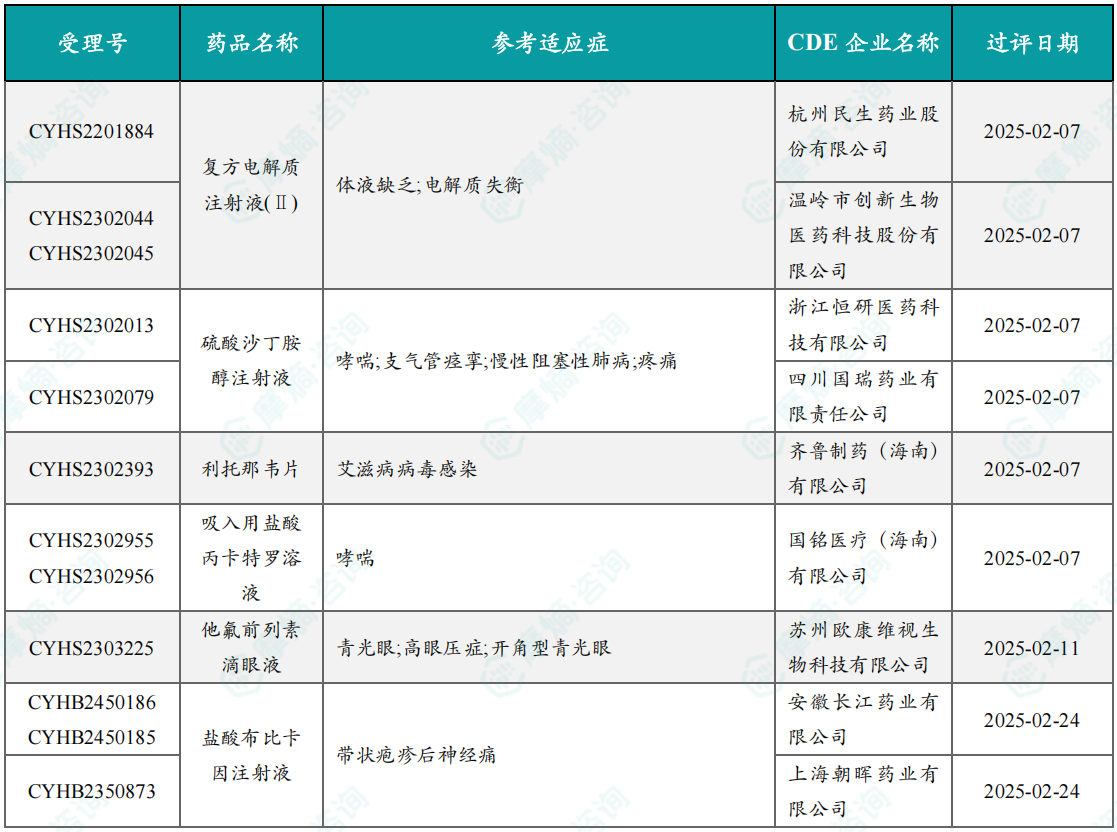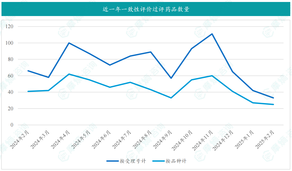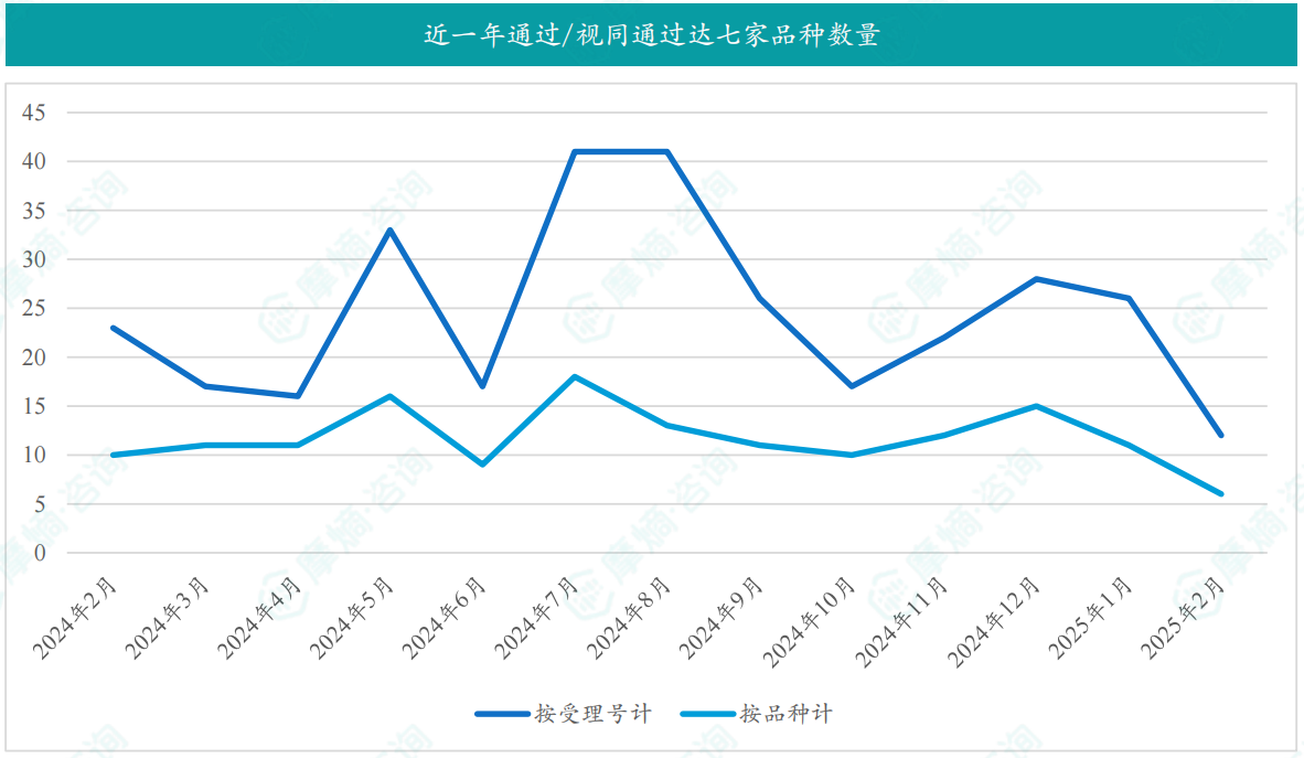 根据摩熵数据统计,2025年2月期间共有6个(共计12个受理号)品种一致性评价达七家过评。
